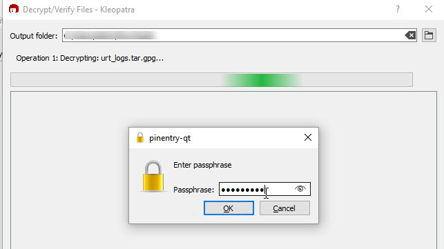 It was time for troubleshooting log review. Thankfully it automatically generates log bundle urt_logs.tar.gpg and encrypts it with the password.