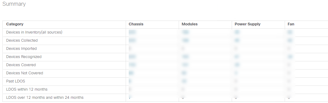 Detailed Inventory summary indicating what is covered and what’s not with LDOS reference.